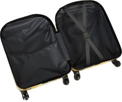 Quattro ruote scorrevoli e il manico telescopico estraibile garantiscono una guida confortevole anche per le mani più piccole. L'organizzazione interna con divisorio a zip e cinghie elastiche mantiene tutto al proprio posto, per un bagaglio ordinato e sicuro.