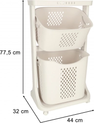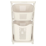 Soluzione elegante e funzionale per l’organizzazione quotidiana della casa. Due cestini capienti consentono una comoda separazione della biancheria o la conservazione di giocattoli e piccoli oggetti. Il motivo perforato favorisce la circolazione dell’aria, mantenendo il contenuto fresco più a lungo.