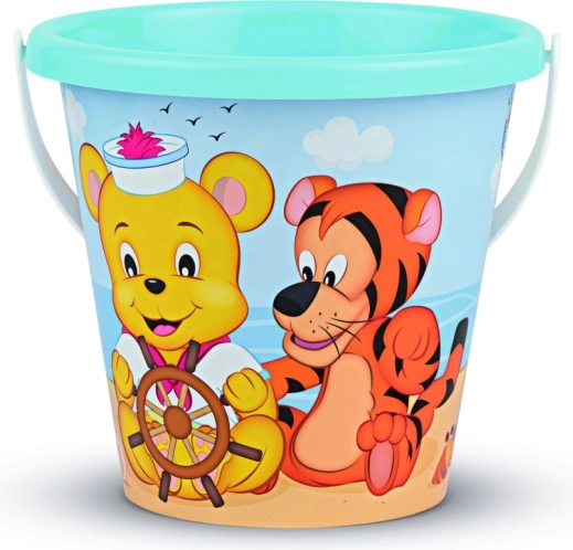 Illustrazioni colorate dell'orsetto e della tigre rendono il secchiello un compagno preferito per i giochi nella sabbia e in acqua.