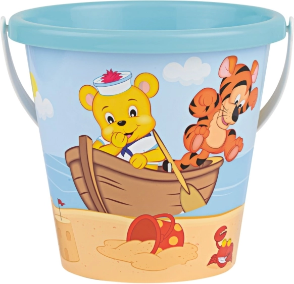 Un secchiello carino e resistente con allegre immagini dell'orsetto e della tigre accompagna i bambini nei giochi in spiaggia e nel parco giochi. Grazie alle dimensioni compatte, si impugna benissimo e si trasporta facilmente, mentre il manico robusto assicura un trasporto comodo di sabbia bagnata o acqua.