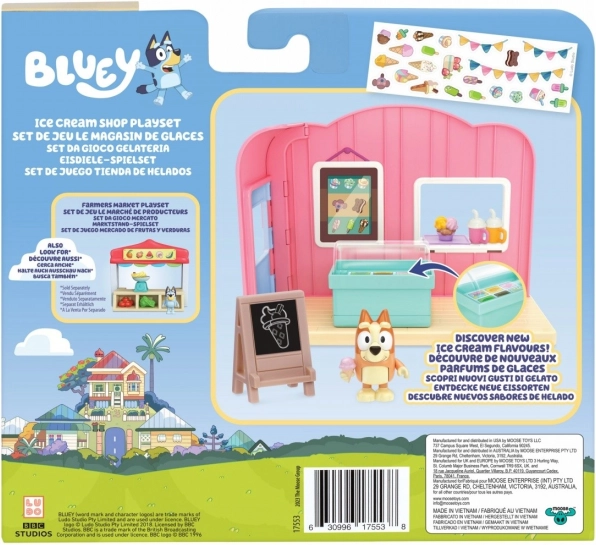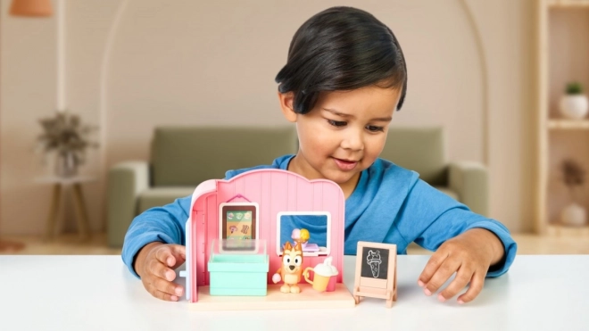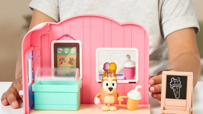 Mini Gelateria Bluey è un set giocoso che permette ai bambini di immedesimarsi nel mondo di Bluey. Questo set include uno stand rosa di gelato e la figurina di Bingo che funge da venditore di gelato. I bambini possono creare le proprie storie grazie al design autentico e ai dettagli come lo stand di gelato, il freezer e altri accessori.
