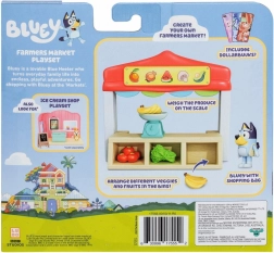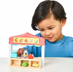 Banco con bilancia, scomparti rimovibili, frutta e verdura in plastica, banconote, figurina di BLUEY