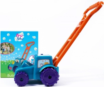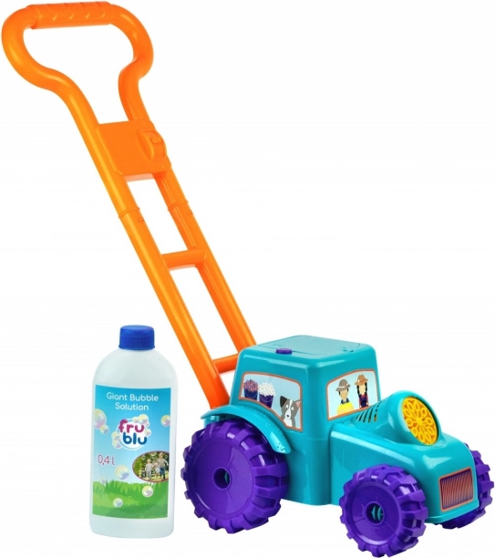 Dai il via al divertimento in giardino e in casa con il trattore a bolle FRU BLU! Questo colorato veicolo, quando viene spinto, crea tantissime bolle arcobaleno, motiva i bambini al movimento e, grazie alla luce LED integrata, offre uno spettacolo ancora più attraente. Grazie alla bottiglia sigillata con liquido speciale, il gioco è senza fuoriuscite e senza bisogno di pulire: ideale per bambini dai 3 anni.