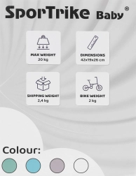 La balance bike SporTrike PettyTrike è la prima “bicicletta” ideale per bambini da circa 1 a 3 anni. Grazie alle quattro ruote e al baricentro basso offre un'eccellente stabilità, permettendo ai bambini di concentrarsi sullo sviluppo di equilibrio e motricità senza paura di cadere. La struttura leggera ne facilita la guida e il trasporto per i genitori.