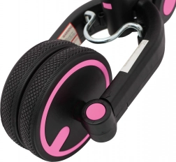 Manopole in gomma antiscivolo e sella imbottita in foam con doppia regolazione (28–30 cm) aumentano il comfort. Ruote in gomma (anteriore 22×3,5 cm, posteriori 17×3,5 cm) con battistrada offrono un’ottima aderenza e la ruota libera con possibilità di rimuovere i pedali permette al bambino di spingersi in sicurezza.