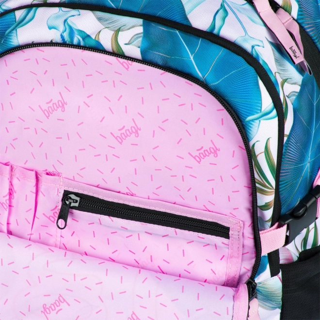 Lo zaino scolastico BAAGL Skate Leafs unisce stile e funzionalità. Schienale ergonomico e spallacci, cinghia pettorale e cinghie di compressione laterali completamente regolabili assicurano un trasporto confortevole e un perfetto adattamento alla corporatura. Il materiale resistente e impermeabile protegge il contenuto e gli elementi riflettenti aumentano la visibilità in condizioni di scarsa illuminazione.