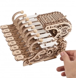 Con il modello meccanico Ugears Celesta, puoi scoprire il fascino della musica. Parte del modello è uno xilofono comandato da tastiera, che può essere programmato usando i pin e girando la maniglia. Il modello non è solo esteticamente attraente, ma anche completamente funzionale, permettendo un gioco e apprendimento interattivo.
