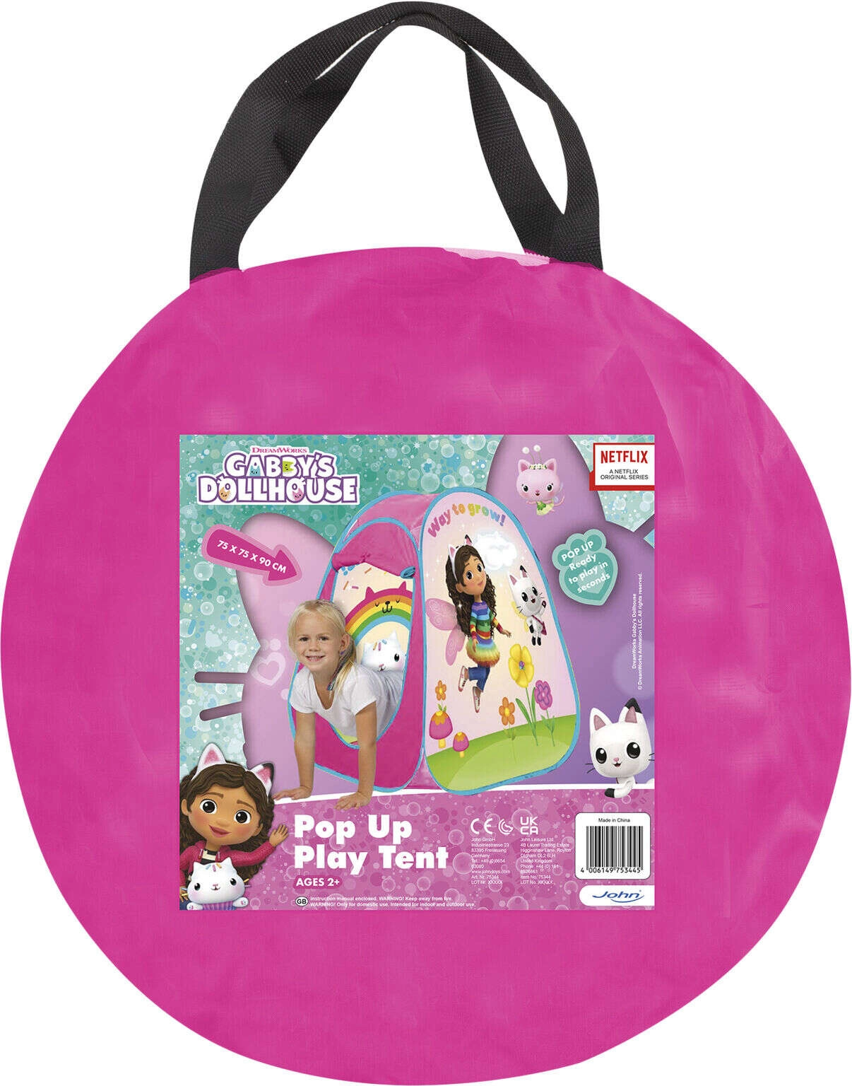 Scopri una tenda per bambini giocosa e pratica con il tema Gabi della serie La Casa delle Bambole. La tenda si apre da sola in 3 secondi, è leggera, ha pavimento, tetto in rete per luce e ventilazione e una comoda apertura d’ingresso con possibilità di fissaggio.