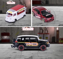 Ogni macchinina è in metallo, con parti apribili (ad es. porte, cofano o bagagliaio) e sospensioni a molla per gioco e esposizione.