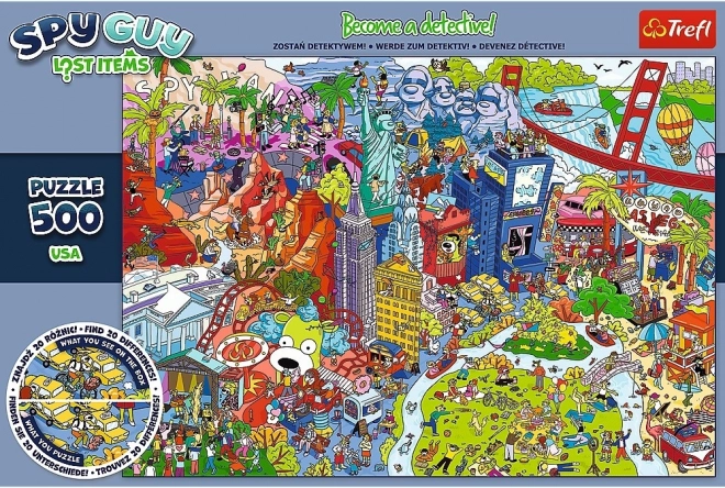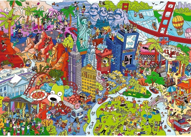 Scopri un puzzle interattivo che unisce il piacere dell’assemblaggio a una sfida da detective. Il tema USA è ricco di dettagli e piccole enigmi – alcuni oggetti sono misteriosamente scomparsi dall’immagine e il tuo compito è trovarli. Il puzzle completato misura 480 × 340 mm, perfetto per un tavolo o una base di supporto.