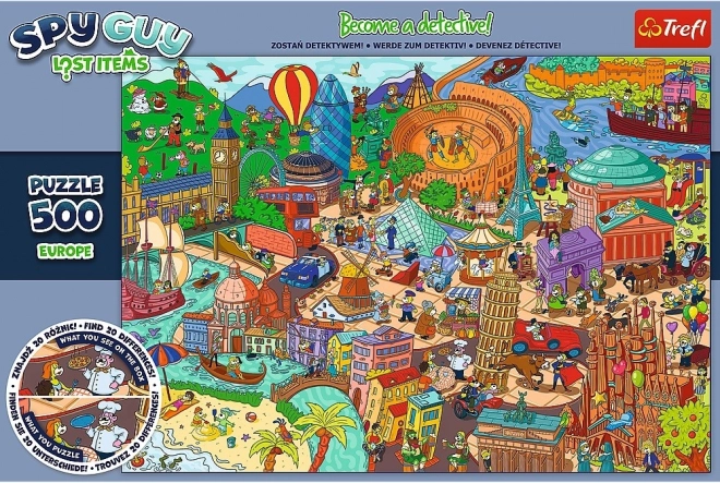Scopri una sfida divertente per bambini e adulti. I puzzle Spy Guy Lost Items offrono un ingegnoso gioco di ricerca: alcuni oggetti dell’illustrazione sono misteriosamente scomparsi e il tuo compito è scovarli. Il puzzle finito misura 480 × 340 mm e colpisce per la vivace mappa illustrata dell’Europa.