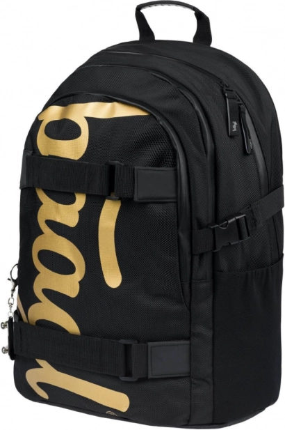 Lo zaino è realizzato in materiale resistente e impermeabile, che garantisce la sua resistenza agli agenti atmosferici sfavorevoli. Elementi riflettenti offrono maggiore sicurezza e il ciondolo metallico a forma di skate completa il design moderno di questo pratico zaino.