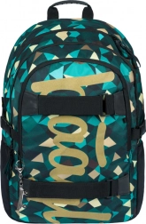Zaino con tre compartimenti chiudibili separatamente, inclusa una tasca per laptop e cinghie per skateboard. Peso leggero e materiale impermeabile.