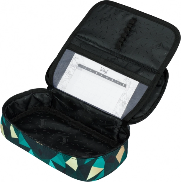Astuccio con divisorio interno a ribalta, tasca con zip e supporto per l'orario scolastico. Design elegante e pratico.
