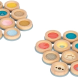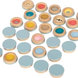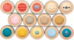 Questo memory tattile offre un modo unico per motivare i bambini a scoprire diverse strutture e materiali. Ogni disco in legno ha una texture diversa, grazie alla quale i giocatori imparano ad abbinare gli elementi solo tramite il tatto. Il gioco è ideale dai 3 anni in su e favorisce la motricità fine, la concentrazione e la cooperazione.