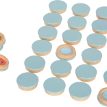 - 28 dischi in legno (14 coppie), sacchetto in tessuto