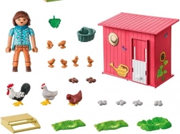 Personaggio PLAYMOBIL, pollaio, 2 galline, gallo, 6 pulcini, adesivi e accessori