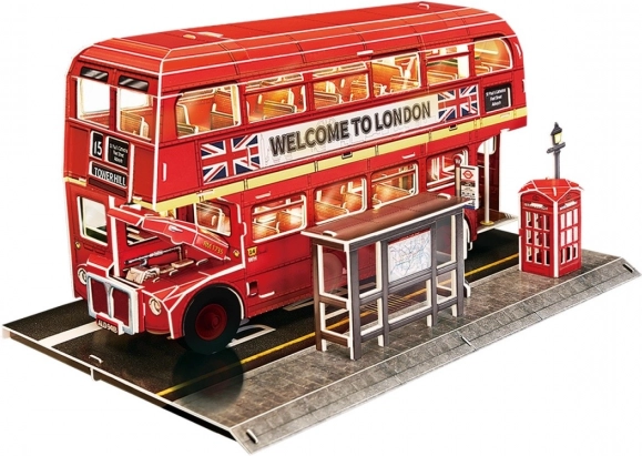Crea un modello dettagliato del leggendario double-decker londinese con il puzzle 3D CubicFun. L'illuminazione LED integrata dona al modello finito un'atmosfera suggestiva e lo trasforma in un'elegante decorazione che di sera brilla letteralmente.