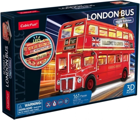 Costruisci l'iconico autobus londinese a due piani con il puzzle 3D CubicFun. Il set offre 72 pezzi in un materiale simile alla schiuma e una suggestiva illuminazione LED, grazie alla quale il modello finito risalta alla grande dopo il tramonto. I pezzi sono numerati e pretagliati per un assemblaggio facile.