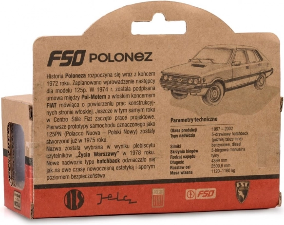 Scopri l’iconica vettura polacca nella versione da collezione FSO Polonez in scala 1:43. Questo modello in metallo, realizzato con precisione e con dettagli in plastica, offre un aspetto autentico ed è ideale per collezionisti e piccoli appassionati di auto. Soddisfa le norme di sicurezza europee ed è perfetto come regalo di stile. Realizzazione in metallo DIE-CAST, lavorazione dettagliata, scala 1:43, licenza ufficiale FSO.
