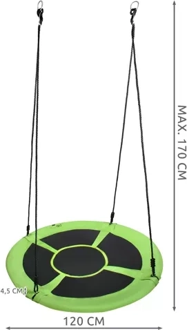 Altalena sospesa tipo nido di cicogna 120 cm, verde‑nero, 150 kg