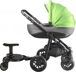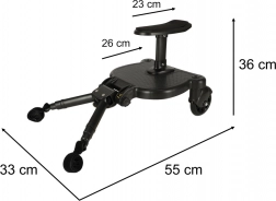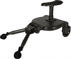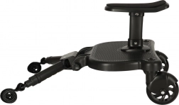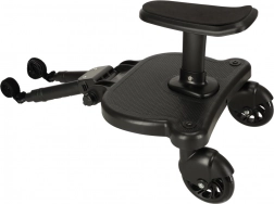 Goditi passeggiate comode con due bambini grazie alla pedana universale con sedile. Il fratello maggiore può sedersi o stare in piedi a seconda delle necessità, mentre il più piccolo riposa nel passeggino. La costruzione resistente e le ruote stabili assicurano una guida fluida e sicura.