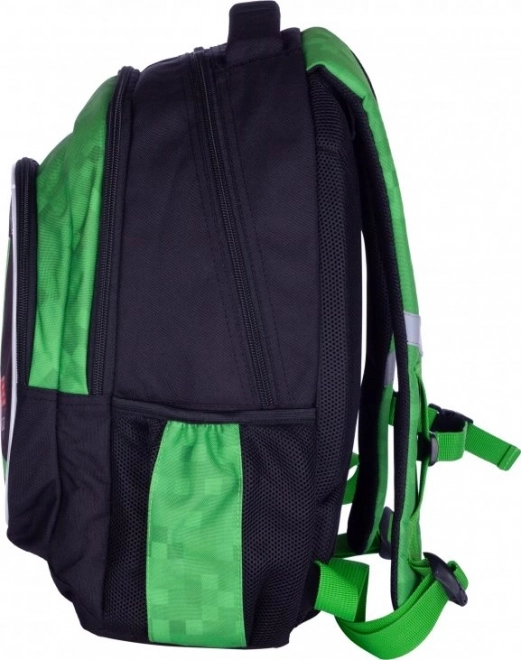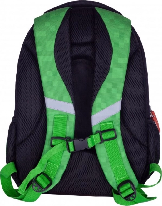Zaino scolastico leggero e resistente per i piccoli fan di Minecraft dai 6 ai 9 anni. Offre un sistema ergonomico per la schiena Ergo Back per un trasporto confortevole, dimensioni compatte con spazio sufficiente per il materiale scolastico, un pratico organizer, tasche laterali in rete per le bevande e elementi riflettenti per una migliore visibilità.