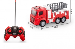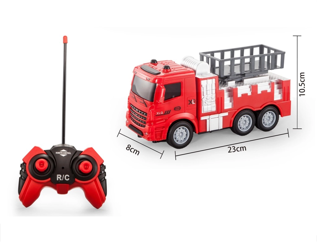 Divertente e dinamico camion dei pompieri RC con radiocomando, dotato di effetti luminosi e sonori, movimento fluido avanti e indietro, sterzata a destra e a sinistra e velocità massima fino a 15 km/h. La stabile frequenza a 27 MHz e la portata del controllo fino a 15 m garantiscono una guida affidabile.