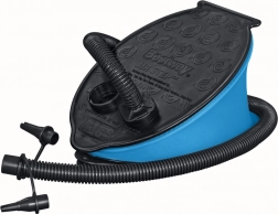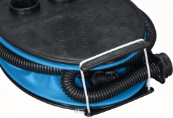 Pompa a pedale leggera e salvaspazio che, grazie al peso ridotto e alla cinghia per il tubo, si ripone e si trasporta facilmente: ideale per campeggio e viaggi.