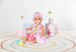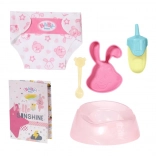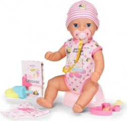Dopo aver bevuto dal biberon, la bambola può usare il vasino oppure bagnare il pannolino. I bambini esercitano così in modo giocoso le abitudini di cura e igiene.
