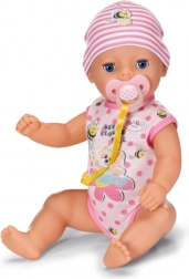 Grazie al ciuccio speciale la bambola apre e chiude gli occhi anche da seduta. Ruotando a sinistra chiude gli occhi, ruotando a destra li apre. Quando viene messa a dormire, chiude gli occhi anche senza ciuccio.