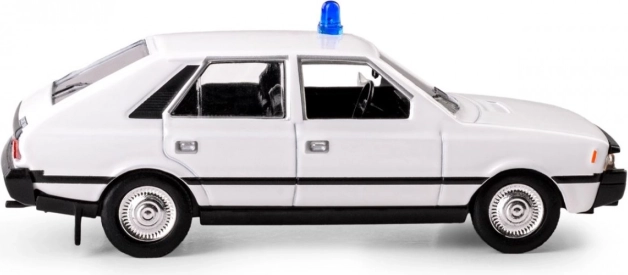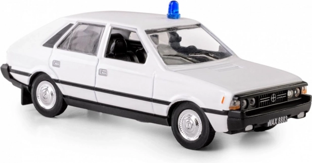 Replica dettagliata del Polonez della serie 07 zgłoś się con lampeggiante blu e linee della carrozzeria autentiche.