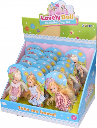 Mini bambola da 12 cm in più varianti. Dimensioni compatte, ottima idea regalo per bambini e collezionisti. Confezionata in display box da 18 pz.