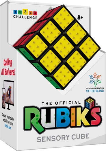 Il Cubo di Rubik 3x3 Rubik’s Sensory Cube porta il leggendario rompicapo in una versione accessibile con motivi in rilievo su ogni colore. Le texture – puntini (giallo), quadrati (rosso), cerchi pieni (blu), anelli (verde), croci (arancione) e liscio (bianco) – permettono di distinguere i lati anche al tatto.