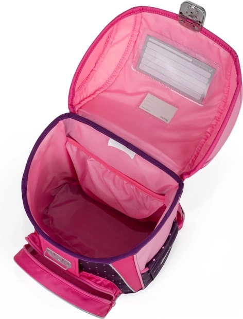 La camera principale con tasca interna, etichetta con nome e orario delle lezioni consente un'organizzazione efficiente dei materiali scolastici. Le tasche anteriori e laterali offrono spazio per portamerenda ed altri accessori.