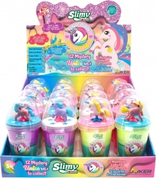 Dai spazio alla fantasia con l’originale slime Slimy, che unisce il piacere di schiacciare, tirare e modellare a figurine di unicorno adorabili e colorate. Ogni vasetto offre una diversa combinazione di colori e un supporto stabile, così i bambini possono esporre la loro figurina o usarla nel gioco.