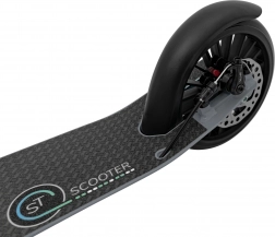 Per la sicurezza, il monopattino è dotato di un doppio sistema frenante: freno a disco manuale posteriore e freno a pedale sul parafango. La regolazione in altezza del manubrio a tre livelli (85–99 cm) si adatta a conducenti di diverse stature e le manopole ergonomiche in gomma offrono comfort anche sui percorsi più lunghi.
