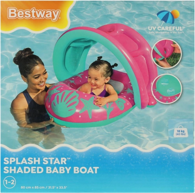 La seduta galleggiante per bambini rosa e blu con tettoia è una scelta eccellente per i più piccoli che iniziano a familiarizzare con l’acqua. La tettoia gonfiabile offre ombra e aiuta a proteggere la pelle sensibile dal sole, e si può rimuovere facilmente quando non serve. I fori per le gambe e la seduta sagomata assicurano sicurezza e comfort, così il bambino può godersi il gioco in acqua in tutta tranquillità.