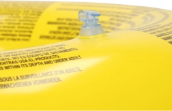 Gli elementi giallo brillante aumentano la visibilità in acqua; l’anello si indossa facilmente ed è comodo per i piccoli nuotatori.