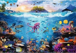 I puzzle TREFL PRIME UFT – Underwater Paradise offrono un’esperienza spettacolare per tutti gli amanti dei puzzle. Nove puzzle separati (ognuno da 1500 pezzi) possono essere uniti in un’immagine gigantesca di 198,6 × 137,6 cm, oppure, grazie alla tecnologia UFT, disposti liberamente secondo la tua fantasia. I colori intensi e l’illustrazione dettagliata del mondo sottomarino rendono ogni sessione di gioco una sfida rilassante e allo stesso tempo entusiasmante.
