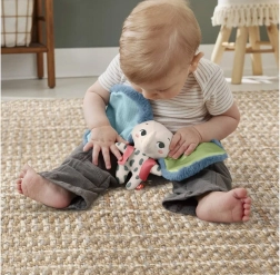 • Multitexture – peluche morbido, elementi satinati e dettagli fruscianti per lo sviluppo sensoriale.