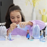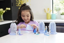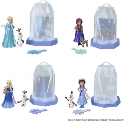 Questa collezione di piccole bambole con sorprese offre un’esperienza di unboxing innovativa grazie a Squishy Ice™ - una miscela gelatinosa blu ghiaccio. I bambini, usando la paletta inclusa, scavano nel contenitore con Squishy Ice™ e scoprono i tesori all’interno: una piccola bambola Anna o Elsa, un personaggio amico e 4 elementi di gioco.