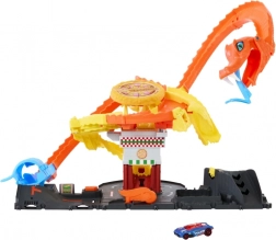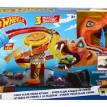 Affronta il temibile cobra in pizzeria e salva la città di HOT WHEELS come gli eroi della serie “Let’s Race”! Questo set d’azione offre tre percorsi casuali, trappole scenografiche e dinamici elementi acrobatici. Avvincenti ostacoli del cobra, 3 possibili direzioni di marcia e collegamento con altri set Hot Wheels City garantiscono divertimento senza fine. Inclusa 1 macchinina in metallo.
