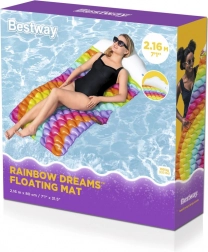 Il materassino gonfiabile arcobaleno BESTWAY è la scelta ideale per momenti di relax sull’acqua. Grazie al PVC di qualità è resistente a urti e all’esposizione solare, e le multiple camere d’aria garantiscono ottima stabilità in superficie. Il cuscino integrato sostiene la testa e assicura un’abbronzatura confortevole e un relax prolungato.