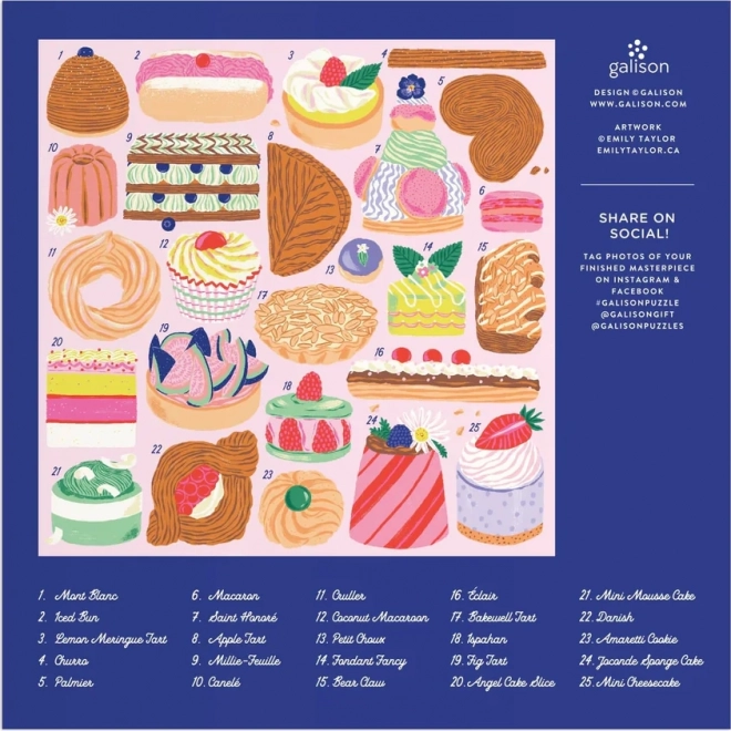 Lo stile del puzzle quadrato Dolci caramelle di GALISON colpisce per i colori vivaci e il tema goloso, perfetto per gli amanti dei dolci e i collezionisti di puzzle di design. Con 500 pezzi offre una sfida equilibrata e un piacevole passatempo da soli o in famiglia.