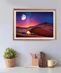 Esplora il meraviglioso scenario desertico sotto il cielo stellato con la spettacolare transizione di colori dal blu all'arancione. Non solo puoi assemblarlo, ma anche apprezzarlo come opera d'arte che invita all'avventura. Le dimensioni del puzzle assemblato sono 49 x 36 cm, ideali per il tuo spazio di lavoro o soggiorno.