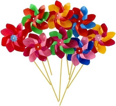 La girandola è realizzata in plastica colorata, i cui colori brillanti attirano l'attenzione di chiunque passi.