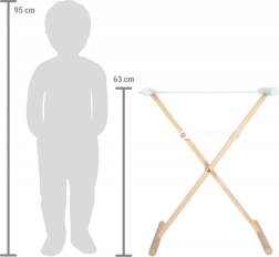 La costruzione stabile con asta di sicurezza garantisce che lo stendibiancheria rimanga solido anche durante giochi intensi. Il colore delicato del legno naturale conferisce un aspetto incantevole che si adatta a qualsiasi interno. Al termine del gioco, lo stendibiancheria si piega facilmente, risparmiando spazio.