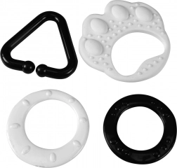 Il massaggiagengive a contrasto bianco e nero a forma di zampa d’orso con forme in plastica sospese (anello, cuoricino, campanellino) stimola la vista dei neonati, favorisce lo sviluppo dei sensi e offre divertimento durante la dentizione.