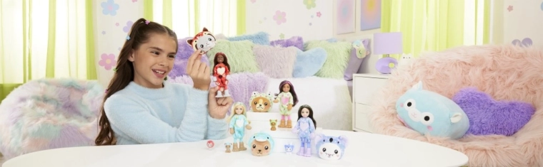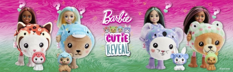 Le bambole Barbie® Cutie Reveal™ Chelsea in costume deliziano i bambini con un adorabile costume e sorprese durante l’unboxing, che includono la bambola Chelsea™, un mini animaletto, eleganti accessori di moda, la possibilità di gioco 2 in 1 e un effetto cambio di colore. Vendute separatamente in base alla disponibilità. Le bambole non stanno in piedi da sole. I colori e l’aspetto del prodotto possono variare.